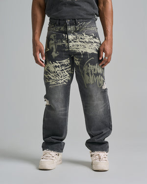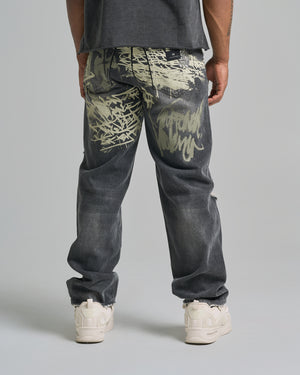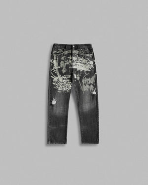 The Kingdom Denim Pant is an elevated take on timeless denim. Featuring a classic straight fit and a abstract graphic inspired by Matthew 11:12. This pant offers a cohesive wardrobe aesthetic when paired with the Kingdom Denim Jacket and other pieces in this collection.