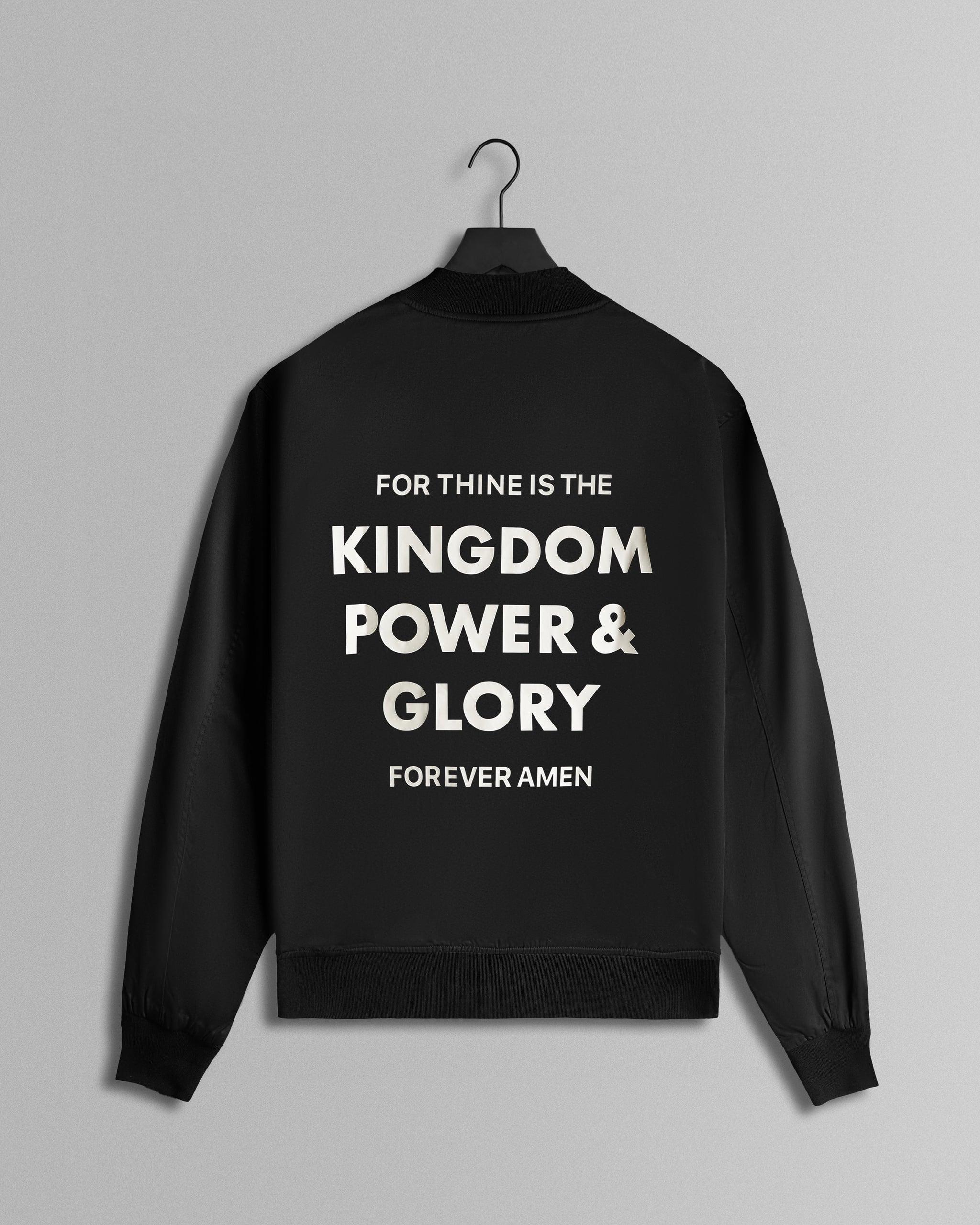 Designed with versatility in mind, the Lord’s Prayer Reversible Bomber Jacket offers two distinct looks in one. One side showcases the Lord’s Prayer with elaborate details, making it both a statement piece and a reminder of faith. The reverse side features a sleek, minimalist design for a more subtle look. Whether worn for its powerful message or its clean, sophisticated design, this jacket adds depth and style to any outfit.