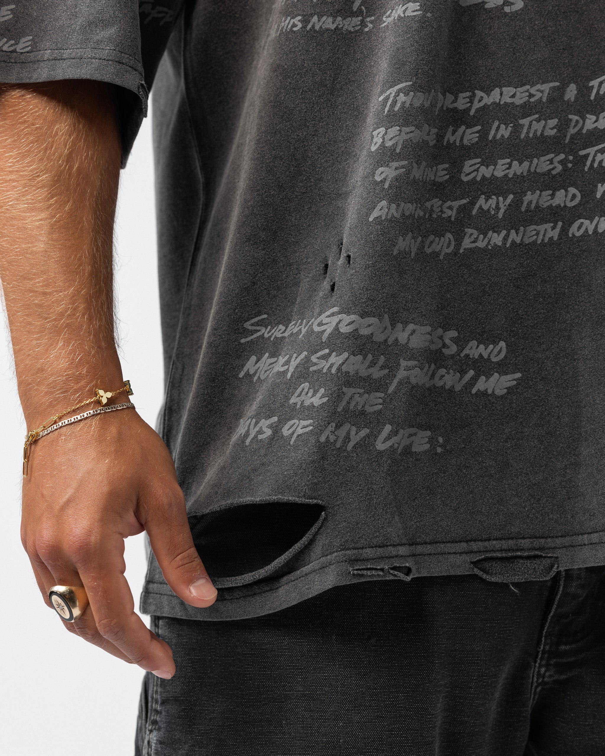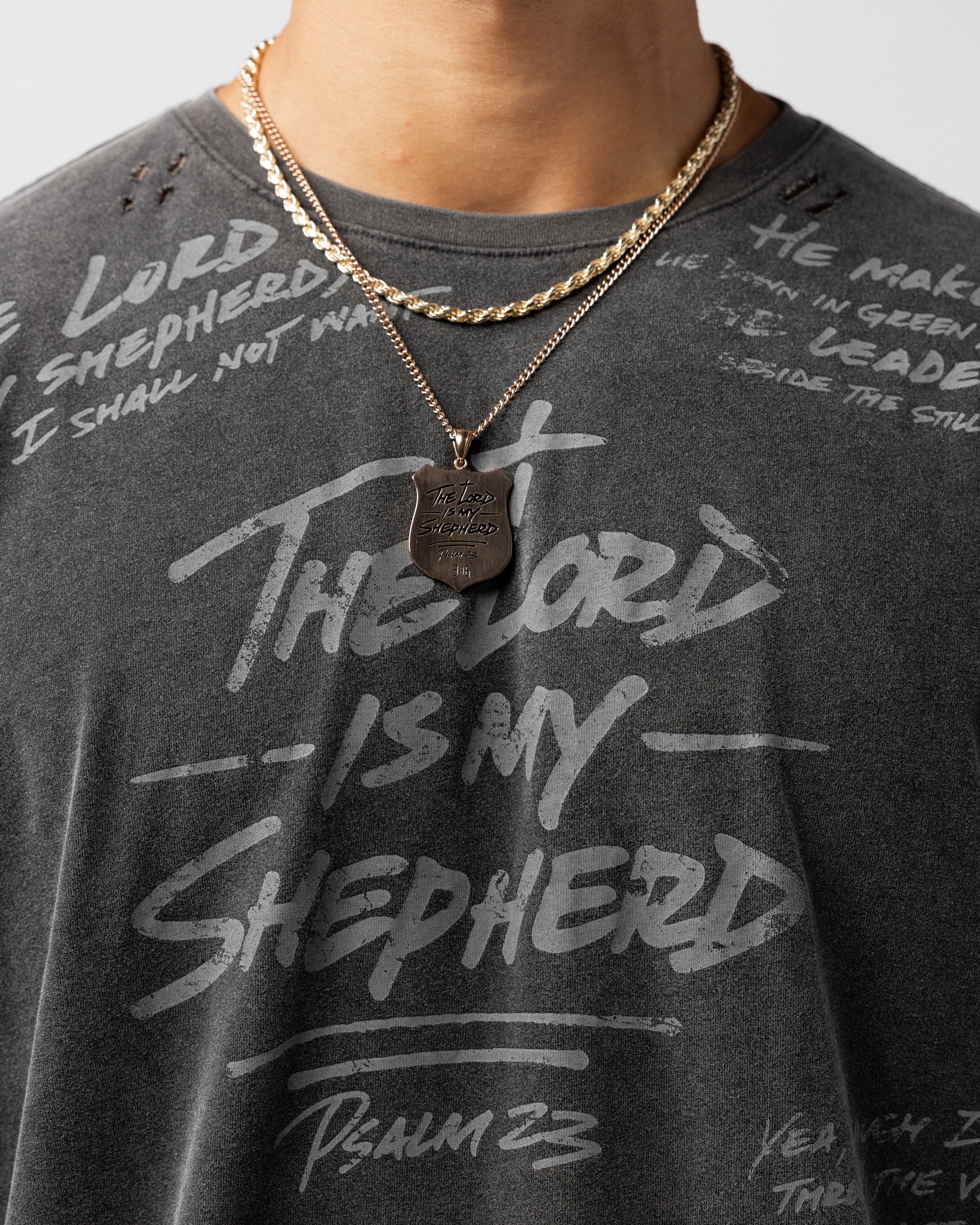 Elevate your wardrobe with the Psalm 23 Distressed Tee, where luxury meets grace in perfect harmony. Truly, a wearable work of art for the discerning soul.