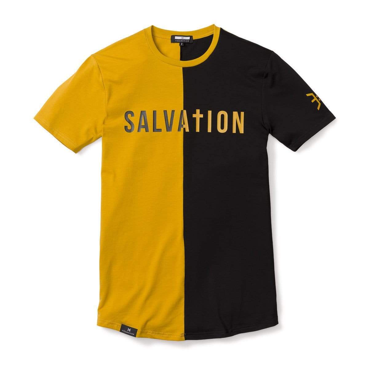 Salvation Vertical Block Swoop Tee - Black and Gold (Long Body)